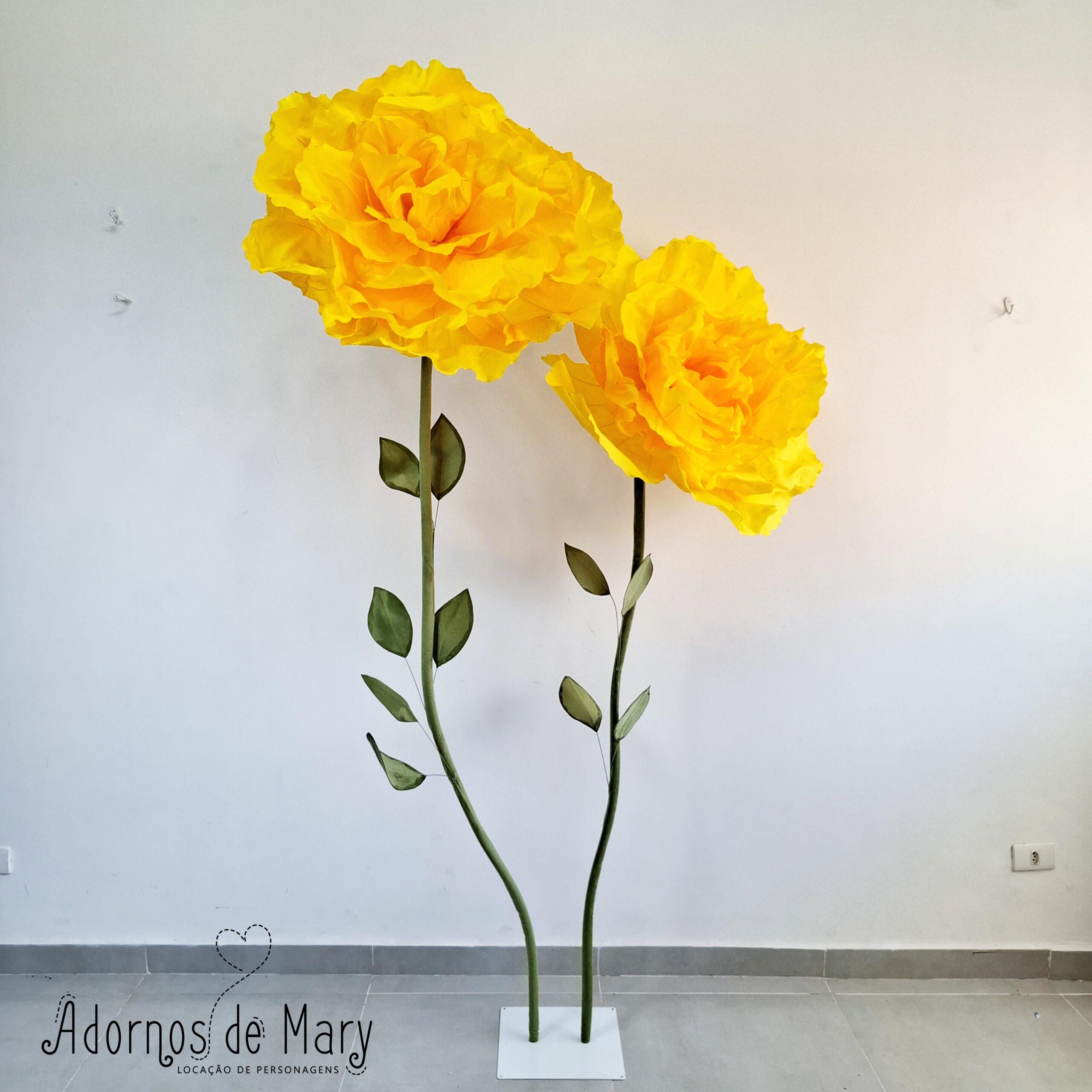 Dupla Flores Gigantes Amarelo Canário (1) Contém duas haste, duas flores e uma base. Mede aproximadamente 2,25 de altura flor maior e 1,90 flor menor, sendo 0,75/0,75 de diâmetro. Ideal para tema jardim, bosque encantado, floresta, fadas, passarinhos, debutante, casamento. Retirada somente de carro. IMPORTANTE: Serviço de frete para flores gigantes com valor diferenciado do […]