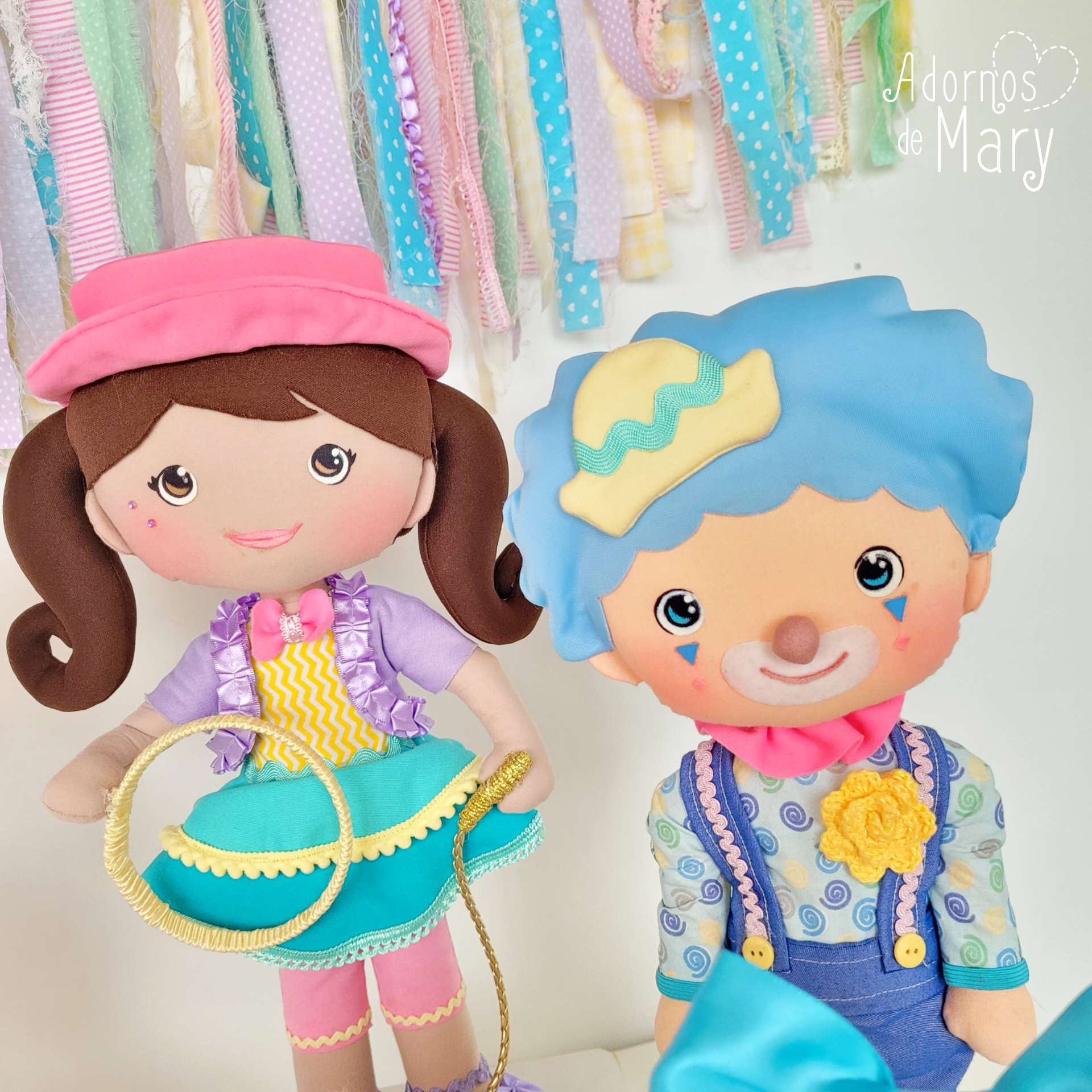 Coleção Circo Rosa 1. Personagens Confeccionados artesanalmente em TECIDO e fibra siliconada, ficam em pé sozinhos sem apoio. Recomendados somente para decoração. Medidas aproximadas. Coelho 32 cm, Foca 35 cm, Macaquinha 33 cm, Elefante 35 cm, Personagens 43 cm, cordão 1.30 Locação do kit com 9 peças.