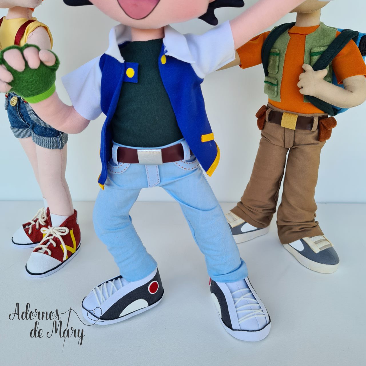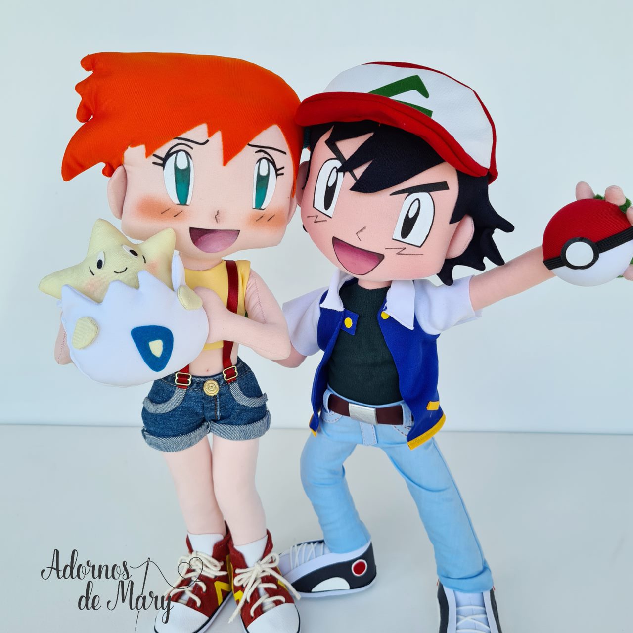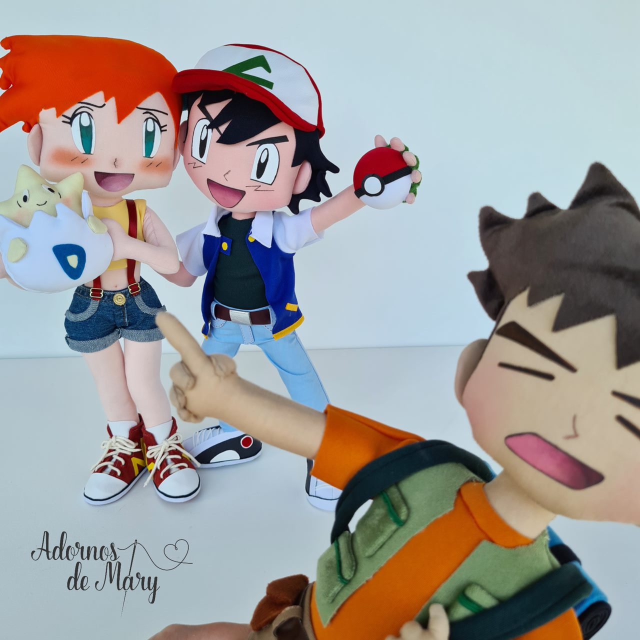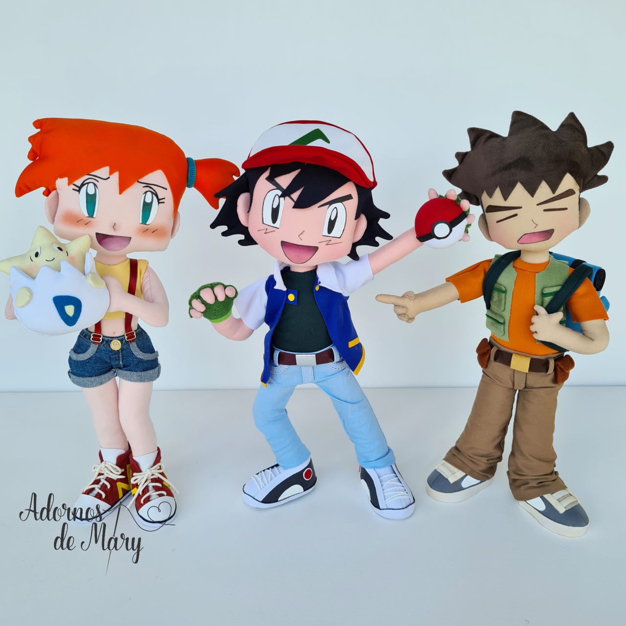 Personagens confeccionados artesanalmente em tecido e fibra siliconada. Medem aproximadamente: Ash 44 cm, Misty 44 cm, Brock 45 cm. Tital 3 peças