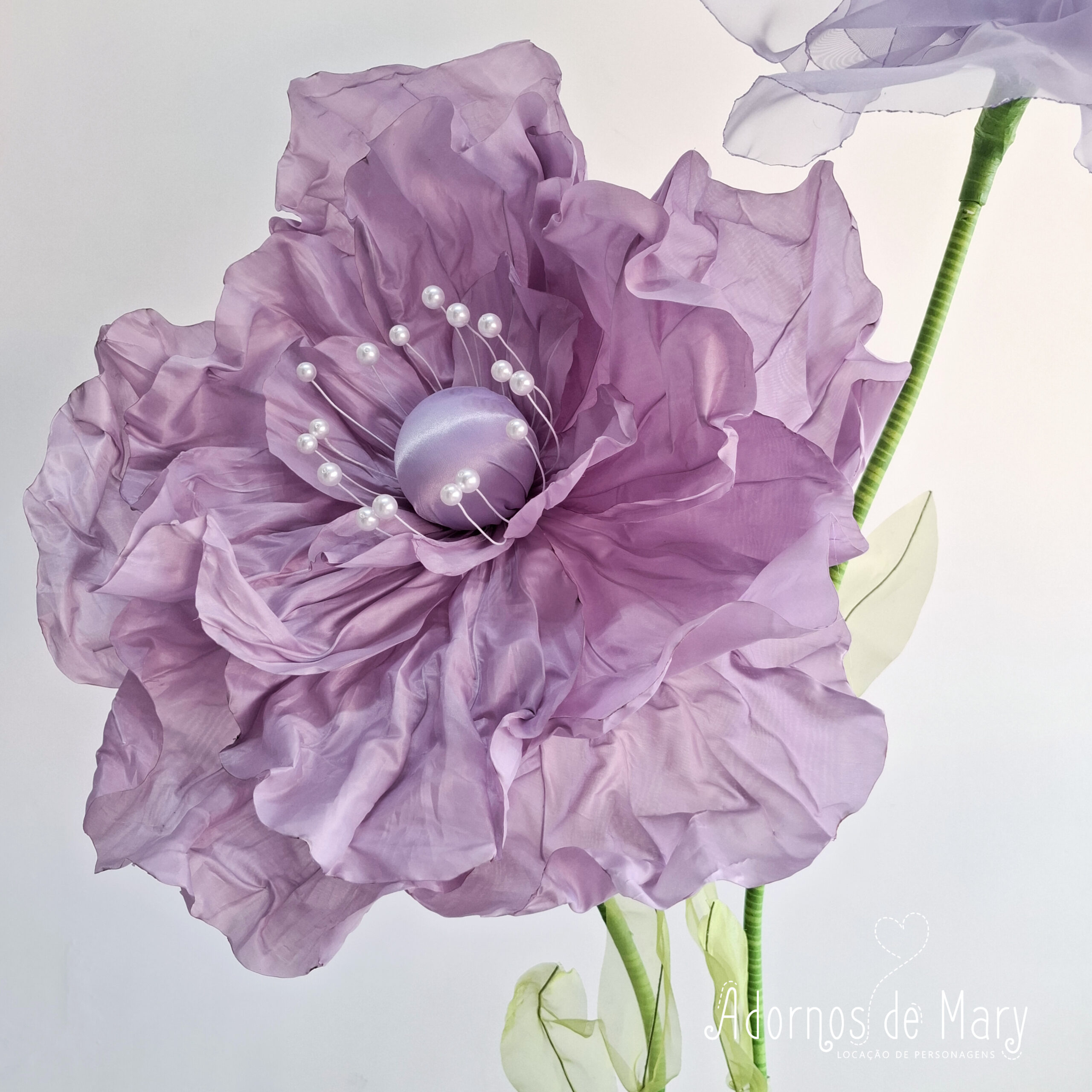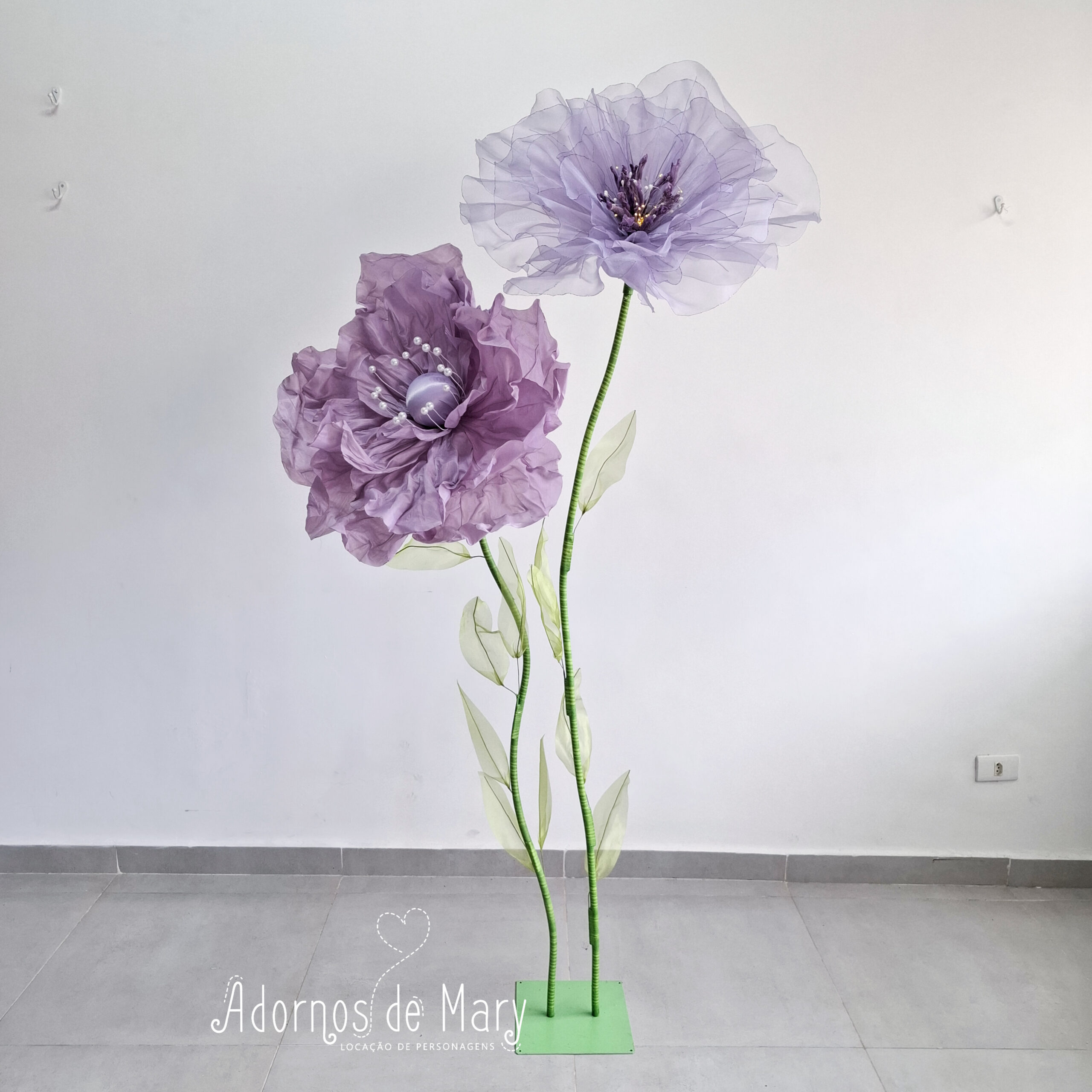 Dupla de flores gigantes lilas (2) com luz central. Contém duas hastes, duas flores e uma base.