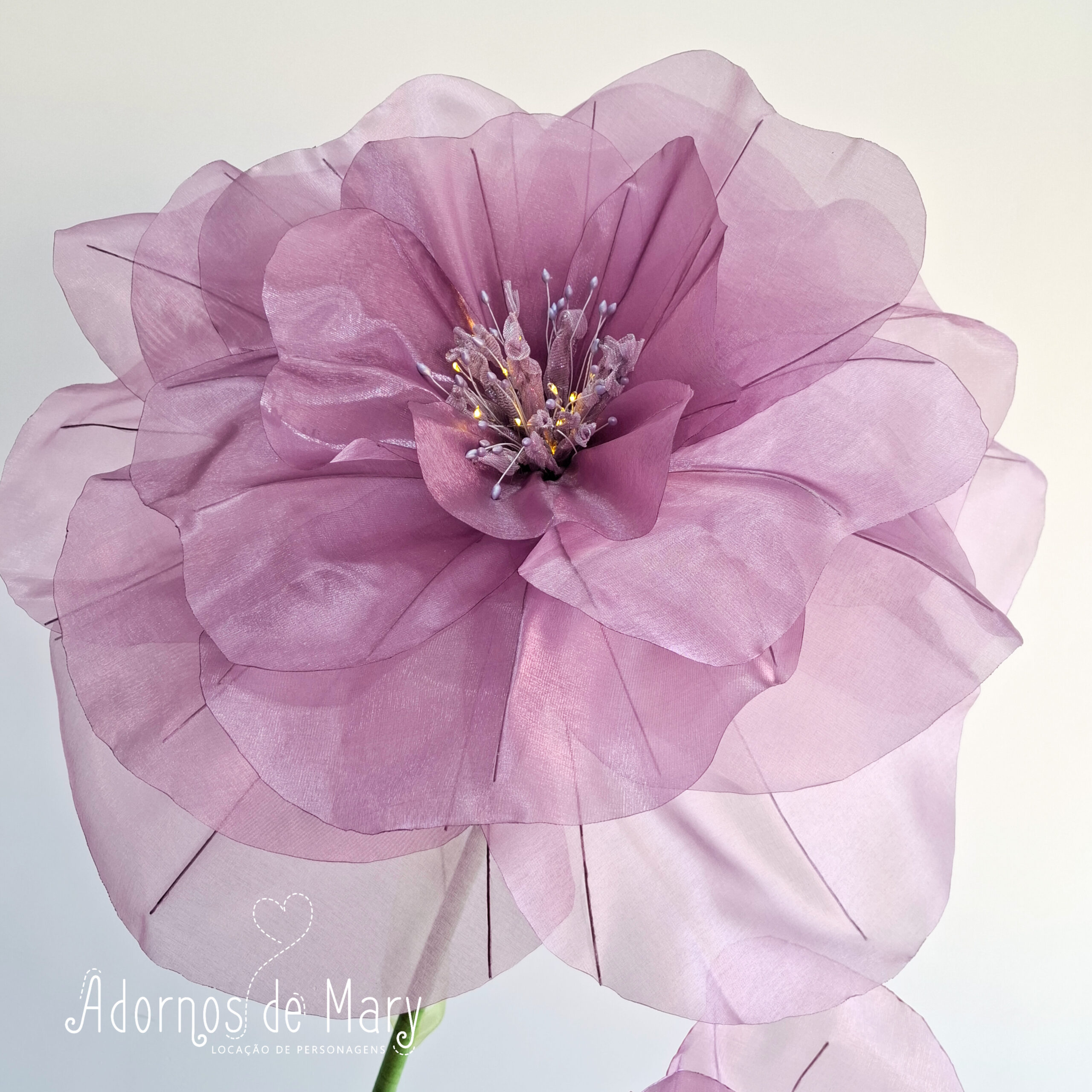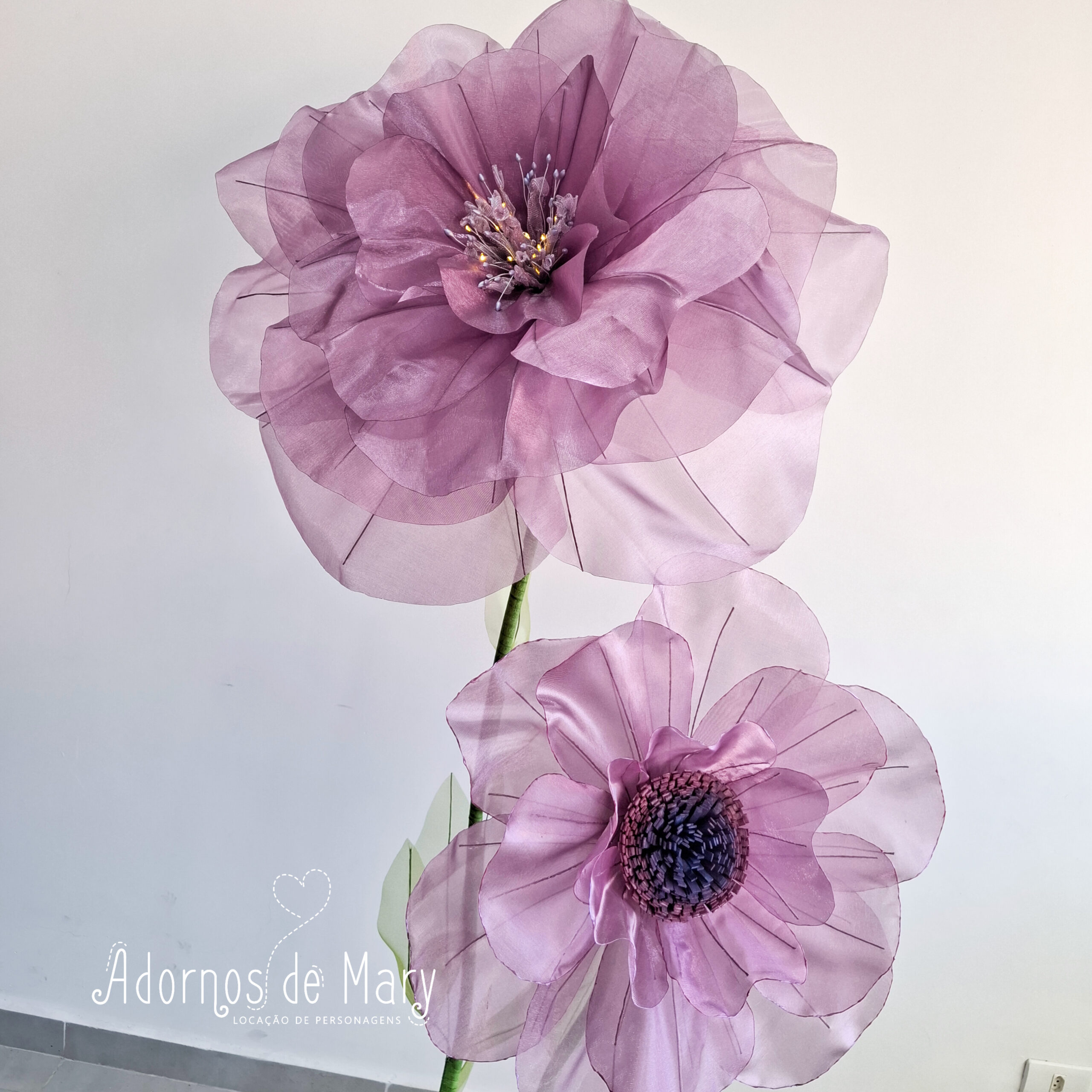 Dupla de flores gigantes lilas escuro (4) com luz central. Contém duas hastes, duas flores e uma base.
