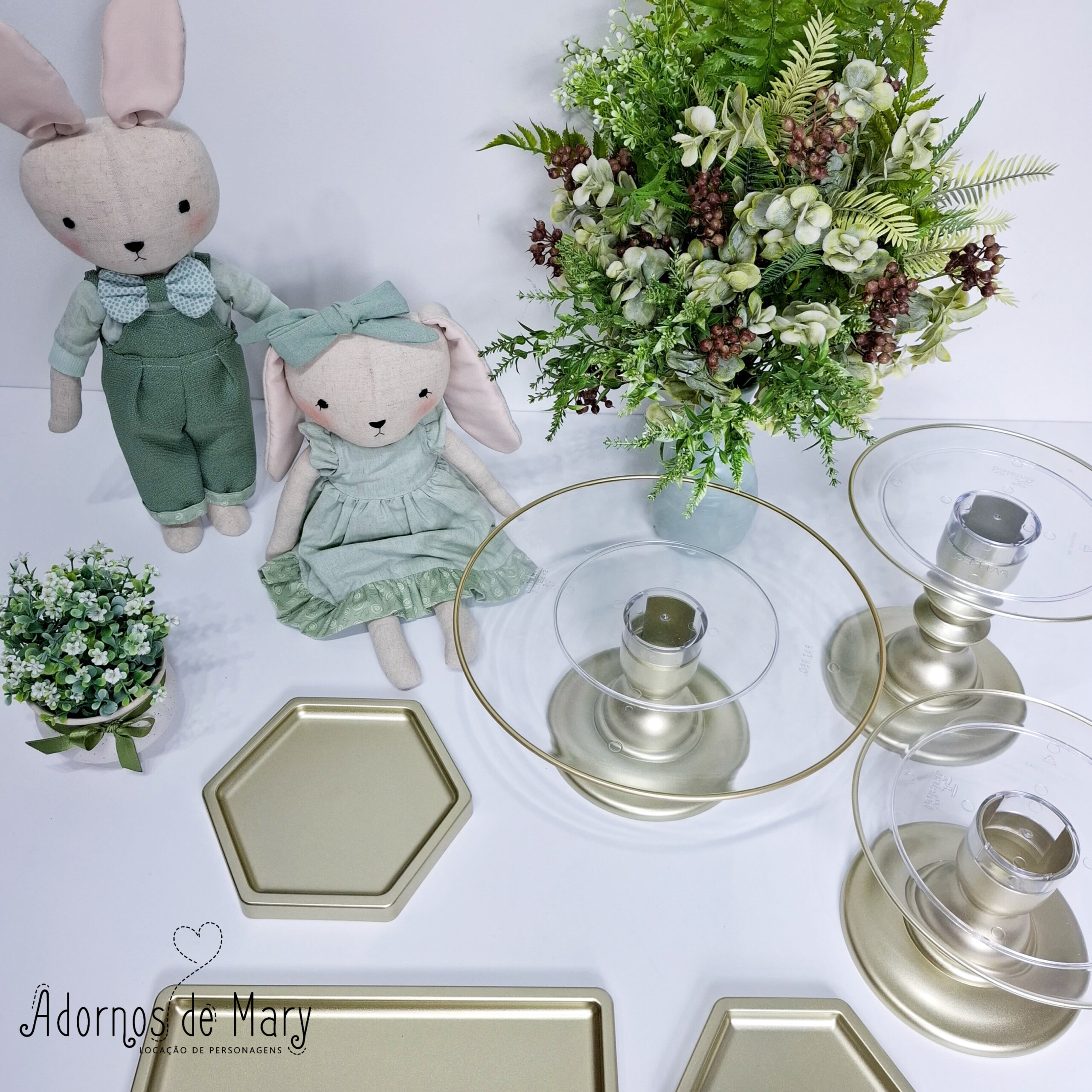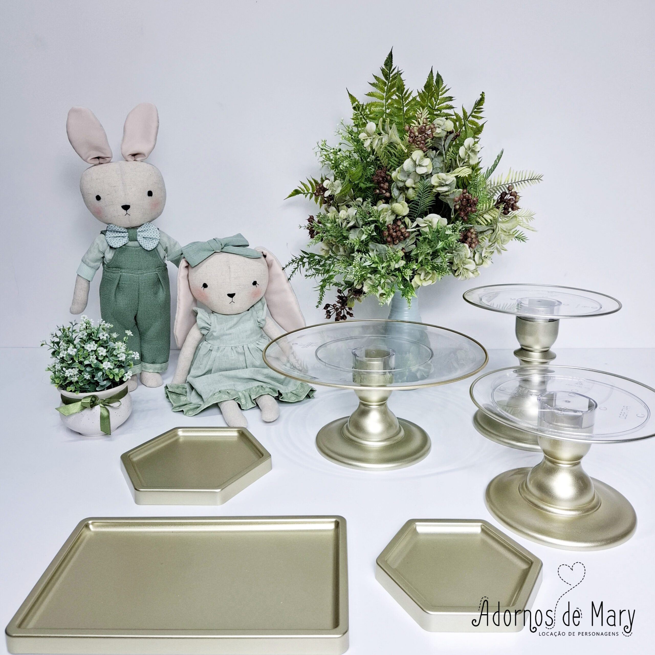 Mini cenário coelhinho verde com dourado (2)